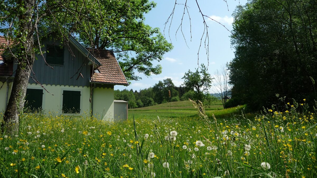 Genieße deine Auszeit inmitten einer traumhaft schönen Landschaft mit satten, grünen Wiesen und Wäldern in unmittelbarer Nähe zum Naturschutzgebiet am Grenzfluss Leiblach.